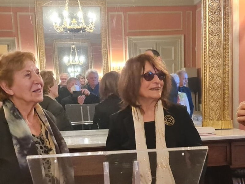 L’historienne Michelle Perrot remettant le 12 janvier 2023 au campus de Sciences Po Paris la médaille de Commandeur dans l’Ordre du Mérite (ONM) à Mme Janine Mossuz-Lavau, directrice de recherche émérite CNRS au CEVIPOF. Elle est diplômée de l’IEP de Paris et docteure en science politique (thèse sur André Malraux et le gaullisme). Présidente d’honneur des AIAM aux côtés du sociologue et philosophe Edgar Morin.